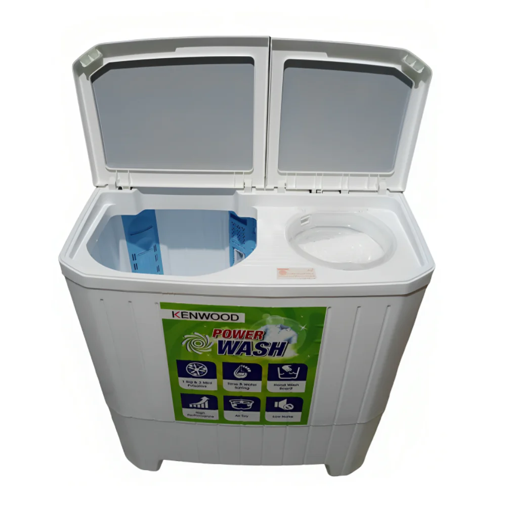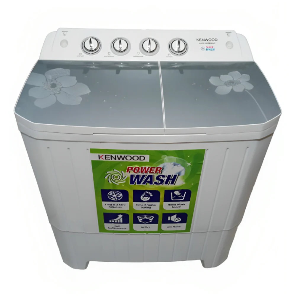 The Kenwood KWM-231159 is a semi-automatic twin tub washing machine with a powerful motor and a large 11 KG capacity. It features a full plastic body with a glass top, providing durability and a sleek design. The machine is designed to provide a thorough and efficient wash while being energy efficient.